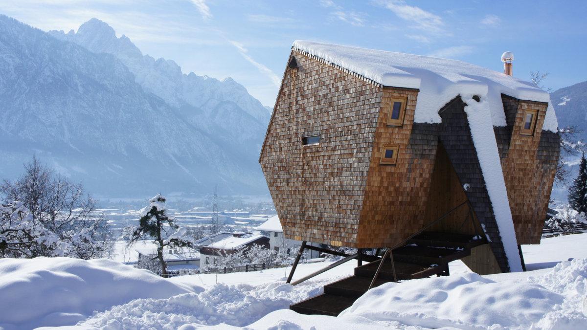 Ankommen, Beine hochlegen und entspannen: Je länger der Fußmarsch, desto größer der Wunsch nach Komfort. Das haben sich auch Lukas und Peter Jungmann beim Entwurf eines Ferienhauses in Nußdorf-Debant bei Lienz gedacht: Den Ufogel können Wanderer und Urlauber mieten, die das Panorama der Osttiroler Berge, Privatsphäre und Gemütlichkeit schätzen. Peter Jungmann entwickelte die Architektur, sein Sohn Lukas das Design des Mobiliars.