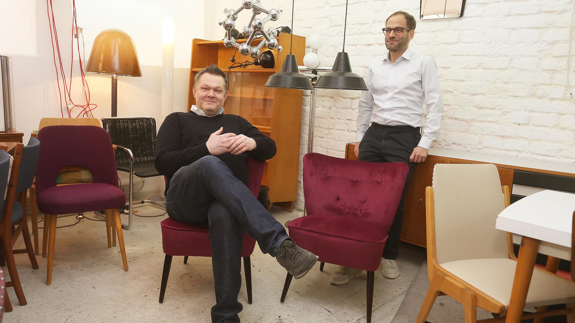 Die Vintagerie befindet sich im ständigen Wandel. Kaum sind die Möbel angekommen, verlassen sie das Geschäft meist schon wieder. "Es gibt für jeden Deckel einen Topf, trotzdem haben wir manche Stücke länger im Laden", erzählt Bechstein. "Meistens sind das aber Dinge, die wir nicht mit stolzgeschwellter Brust präsentieren", schließt Lindenberg. Ein gutes Beispiel sei der grün-weiße Lampenschirm aus Plastik. "Kunststoffmöbel sind schwer zu restaurieren, wenn sie einmal vergilbt sind", erklären die Vintage-Händler. Daher seien sie auch keine großen Fans von Plastik – von Holz und Glas dafür sehr. Das spiegelt sich auch in den derzeitigen Lieblingsstücken der beiden wieder: ein Luster von Kalmar und die Wiener Stadthallen-Stühle von Roland Rainer.